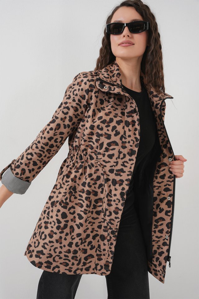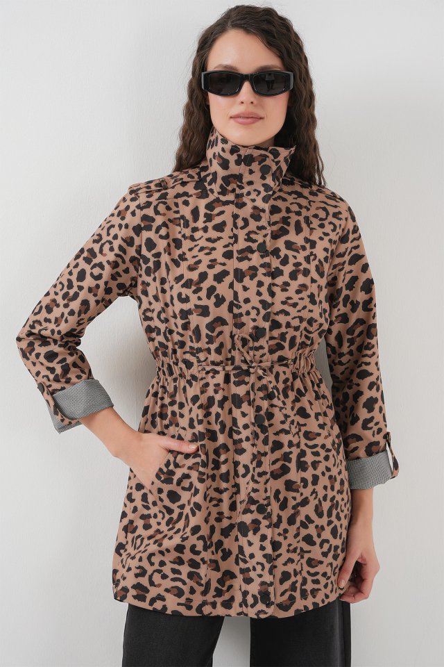 10322 Beli Büzgülü Trençkot - B.Kahverengi