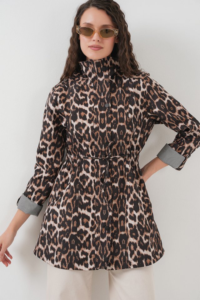 10322 Beli Büzgülü Trençkot - C. Kahverengi