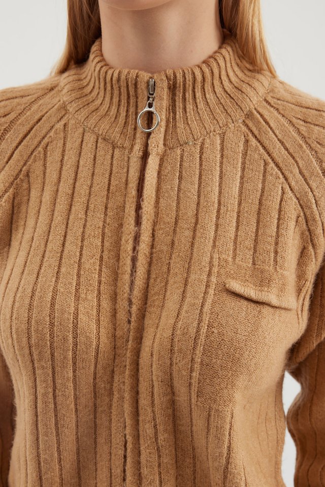 15880 Fermuarlı Triko Hırka - Bisküvi