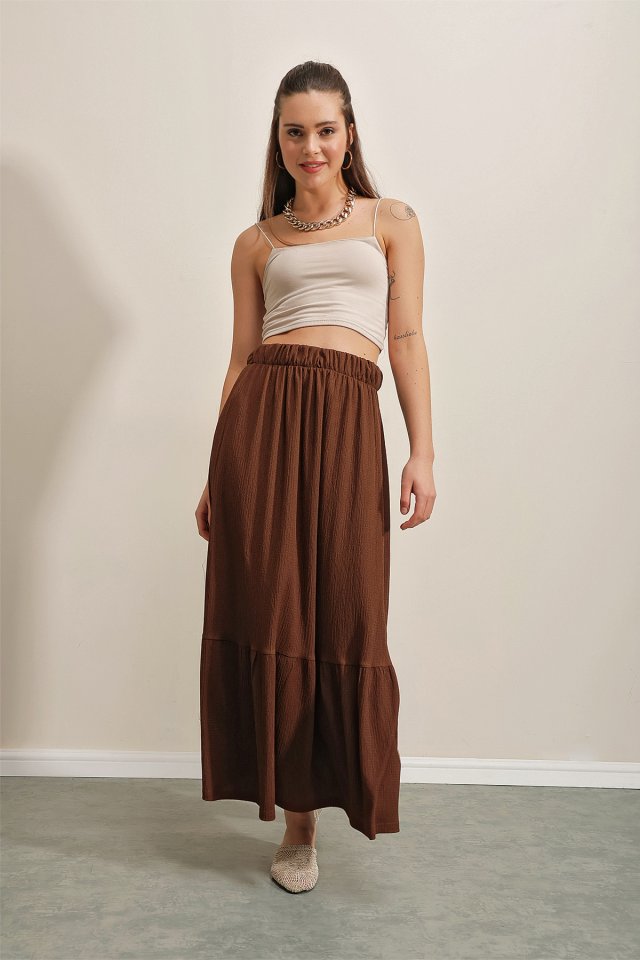 1886 Uzun Örme Etek - Kahverengi
