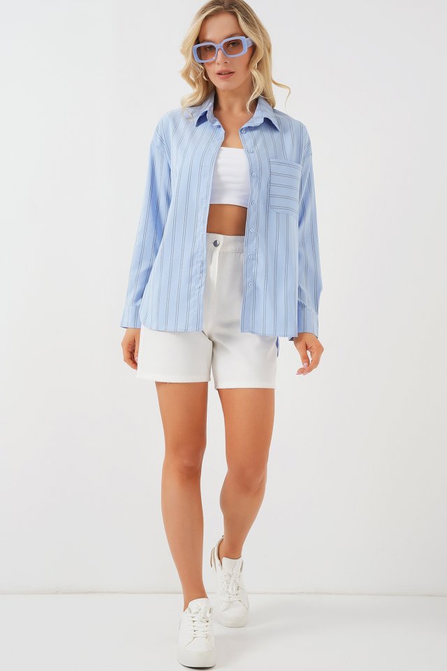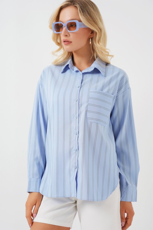 20143 Cepli Oversize Gömlek - Mavi