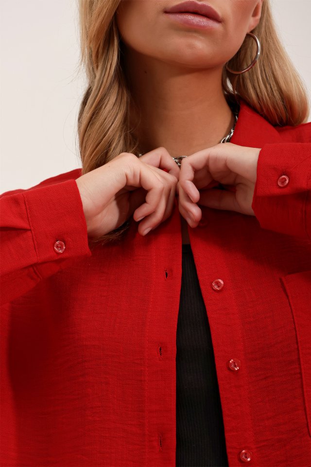 20153 Tek Cepli Oversize Gömlek - Kırmızı