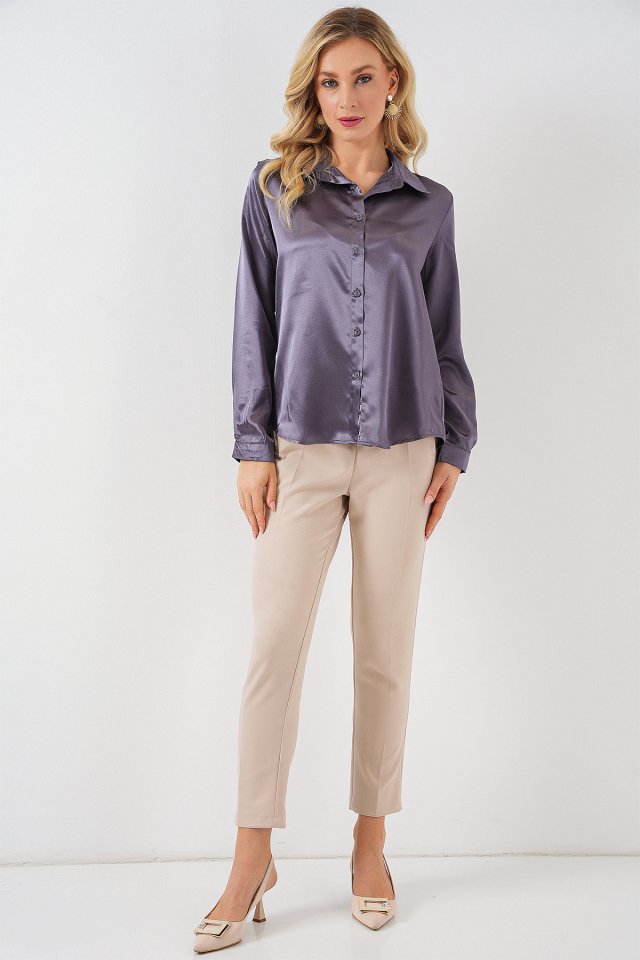 3964 Hafif Dökümlü Saten Gömlek - Antrasit