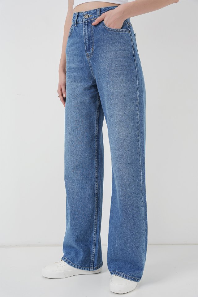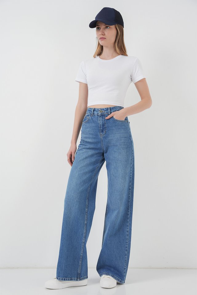 6702 Bol Paça Yüksek Bel Palazzo Kot Pantolon - Lacivert