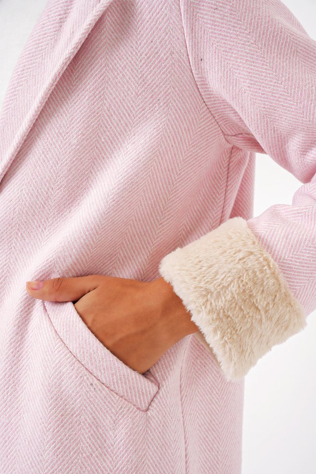 9085 Balık Sırtı Kaşe Kaban - Pudra