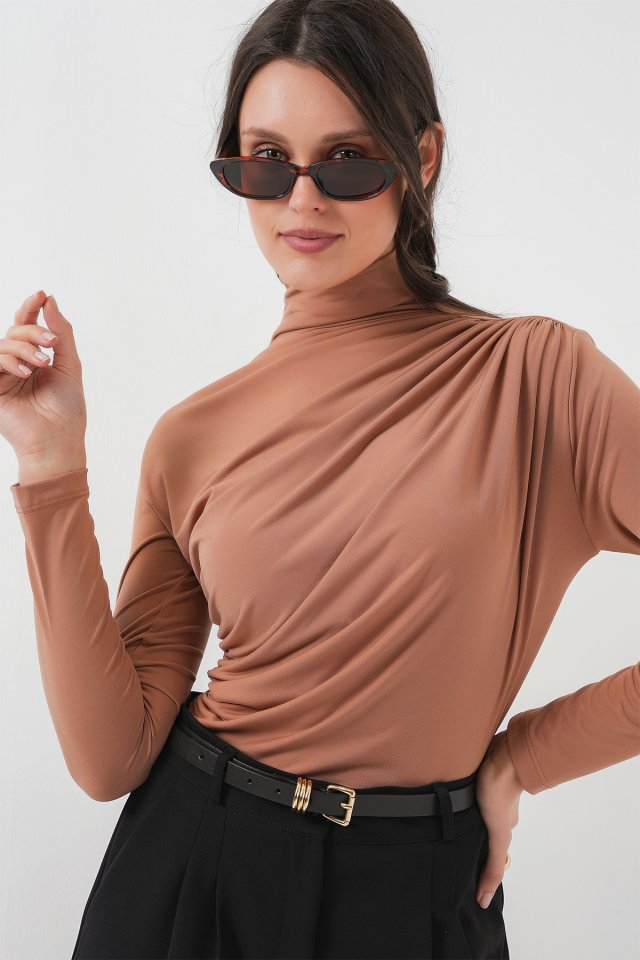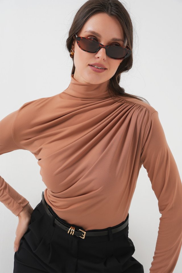 925 Büzgü Detaylı Sandy Bluz - Bisküvi