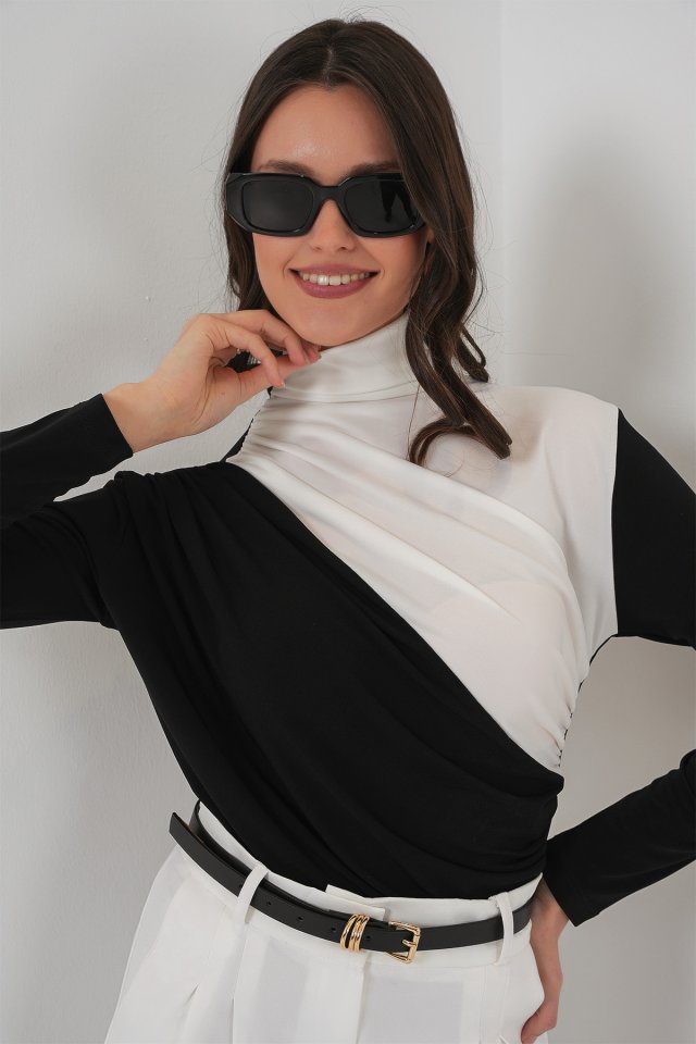 940 Büzgü Detaylı Sandy Bluz - Siyah