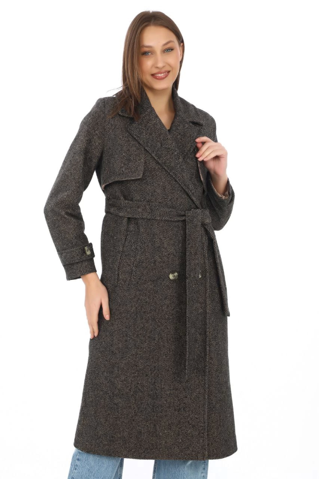 Balık Sırtı Kaşmir Uzun Kaşe Kaban - Kahverengi