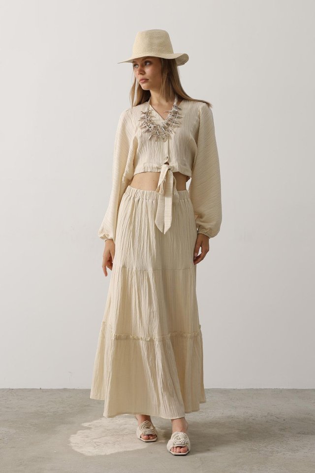 Modelin Ölçüleri: Boy:165, Kg:55, Göğüs:90, Bel:72, Kalça: 100