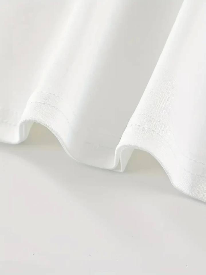 Baskılı Oversize Bisiklet Yaka T-shirt - Beyaz
