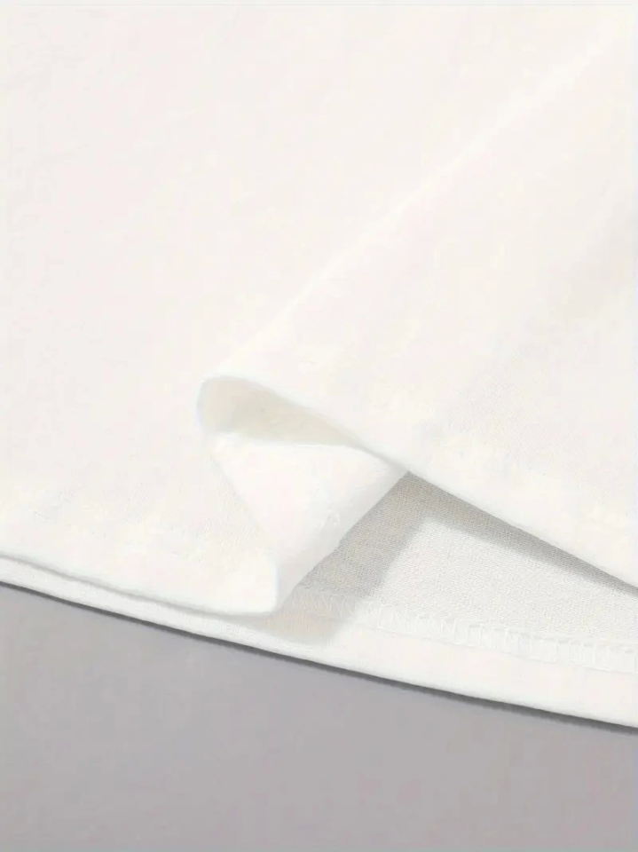 Baskılı Oversize Bisiklet Yaka T-shirt - Beyaz