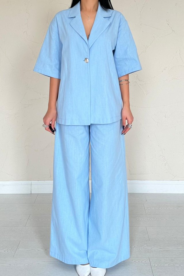 Bej Önü Tek Düğmeli Ceket Pantolon Takım