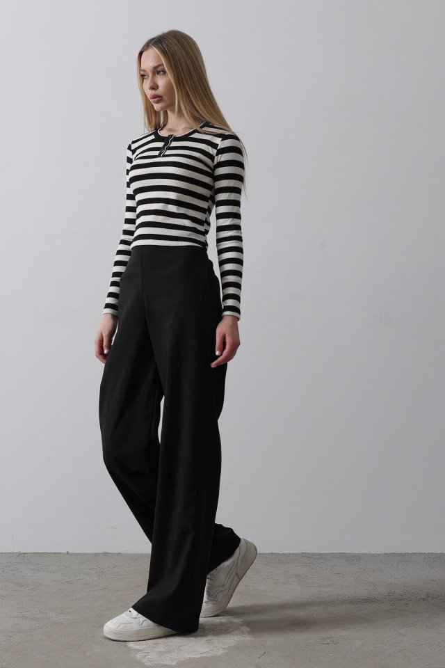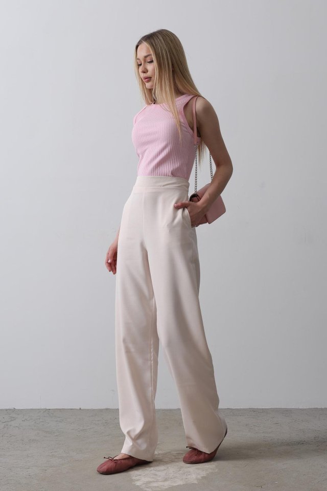 Beli Yarım Lastikli Palazzo Pantolon - Kahve