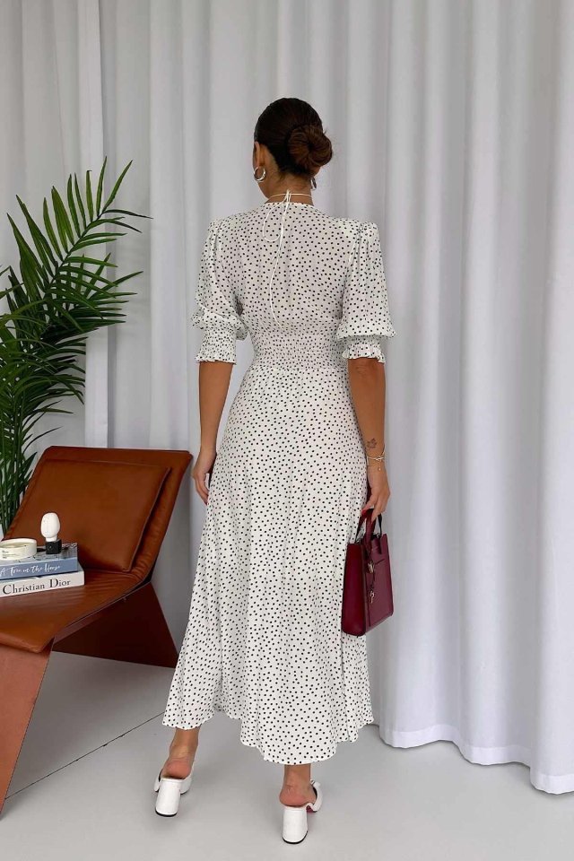 Beyaz Arka Ve Bel Ucu Gipeli Elbise