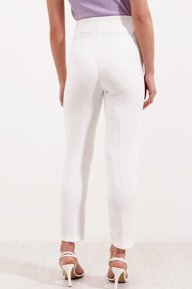 Beyaz Yüksek Bel Kumaş Pantolon 6650