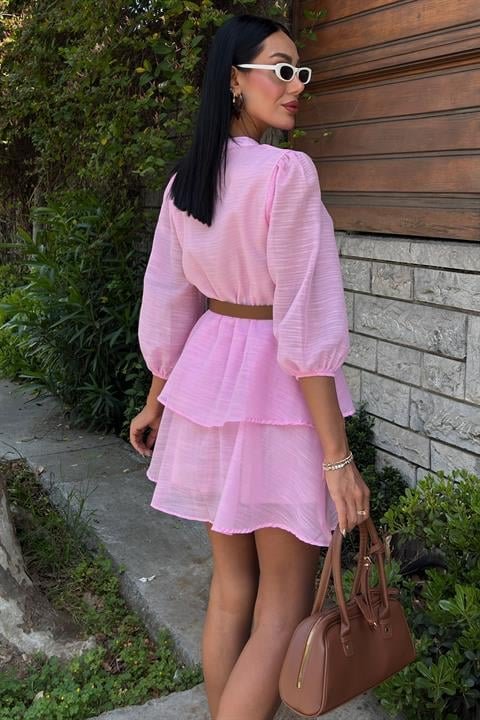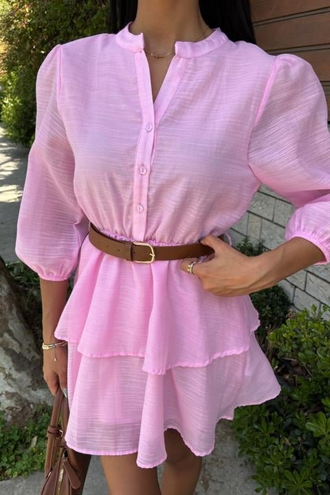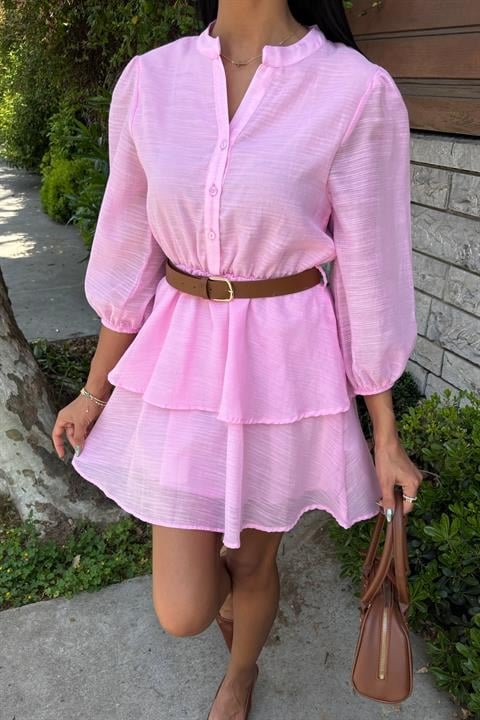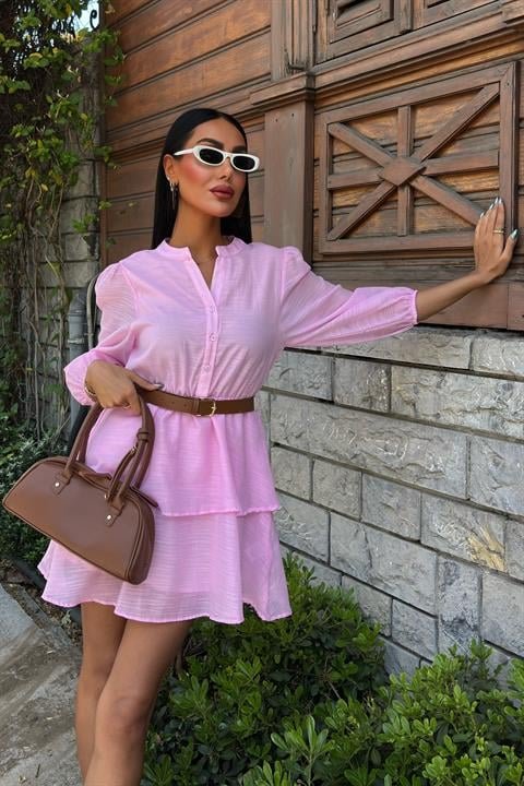 Deri Kemerli Fırfırlı Elbise 2901