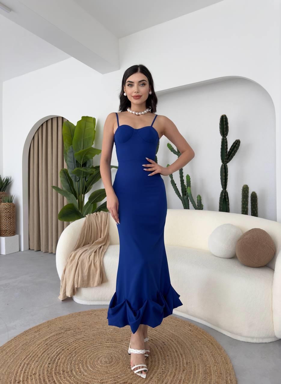 Dominic Eteği Büzgülü Midi Boy Elbise