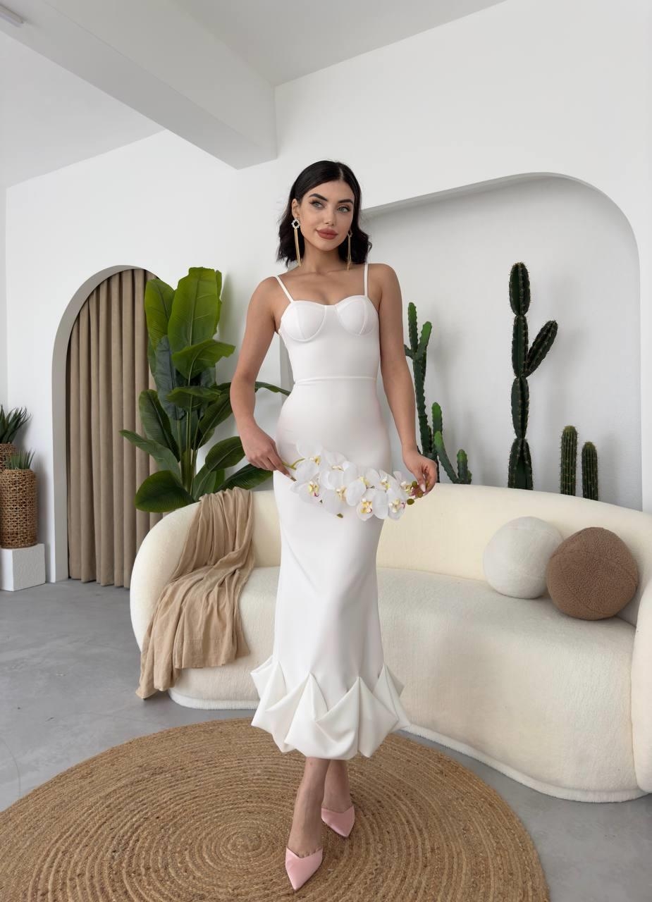 Dominic Eteği Büzgülü Midi Boy Elbise