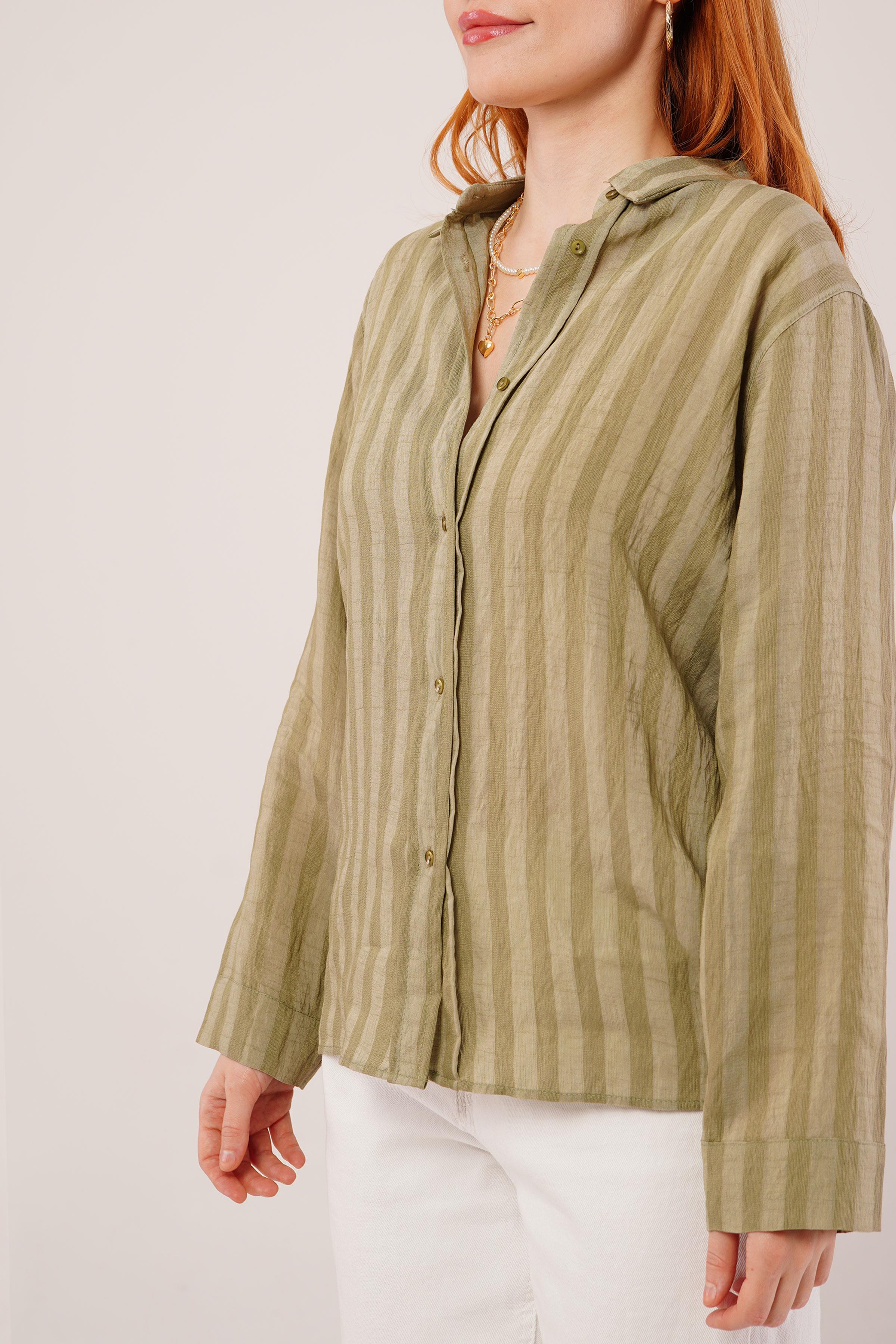 Düğmeli Ve Çizgi Detaylı Yeşil Gömlek
