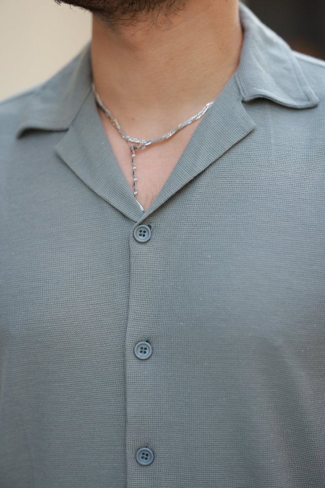 Erkek Apaç Yaka örme Kumaş Kısa Kollu Gömlek