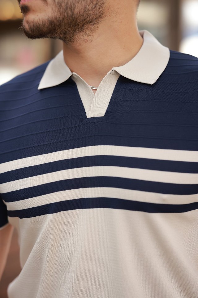 Erkek çizgi Desenli Yakalı Kısa Kollu T-shirt