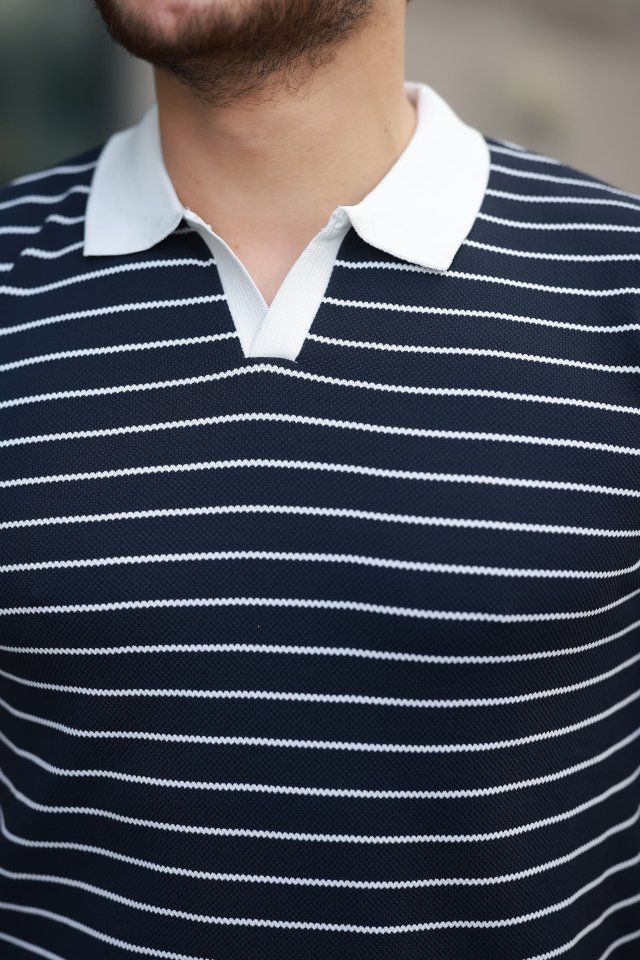 Erkek Kısa Kollu çizgi Desenli örme Kumaş Tshirt
