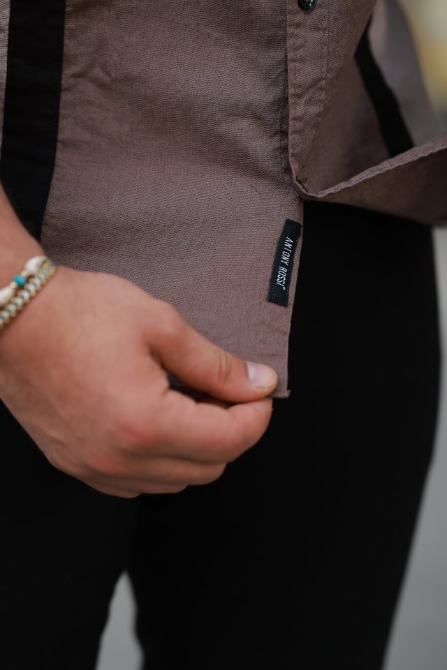 Erkek şerit Detaylı Uzun Kollu Pamuklu Keten Gömlek