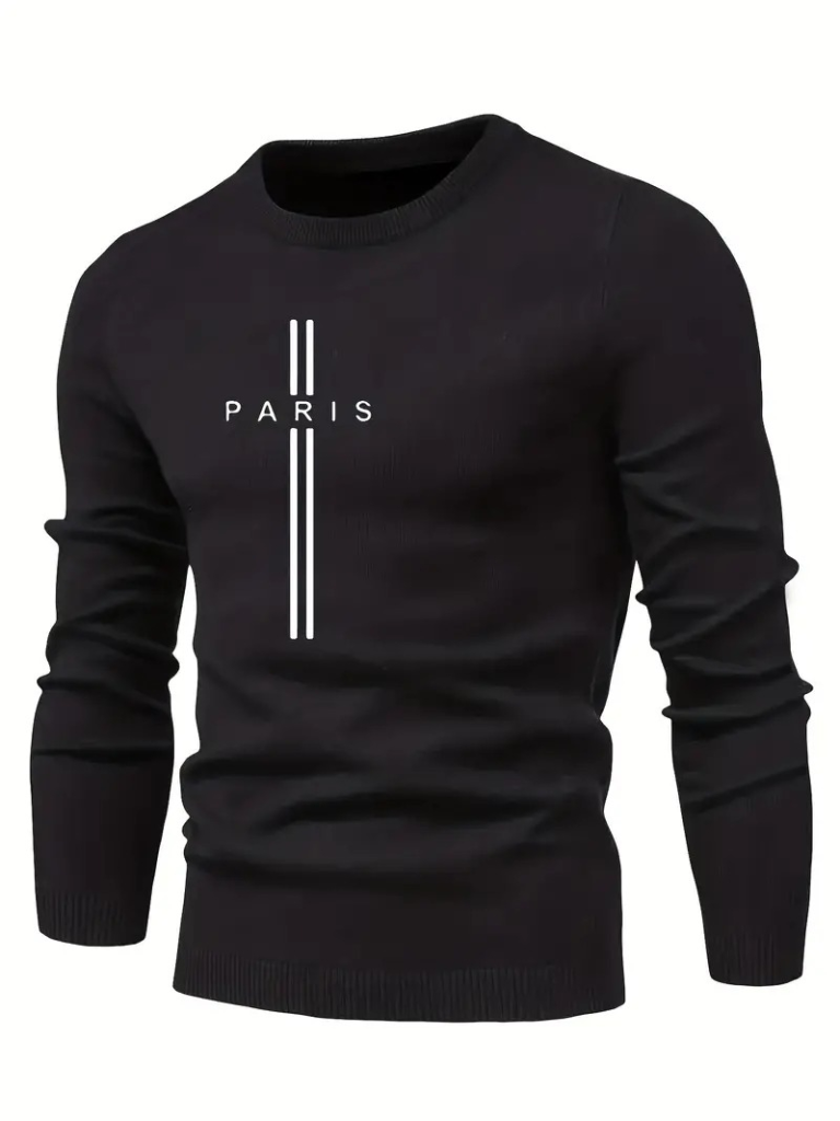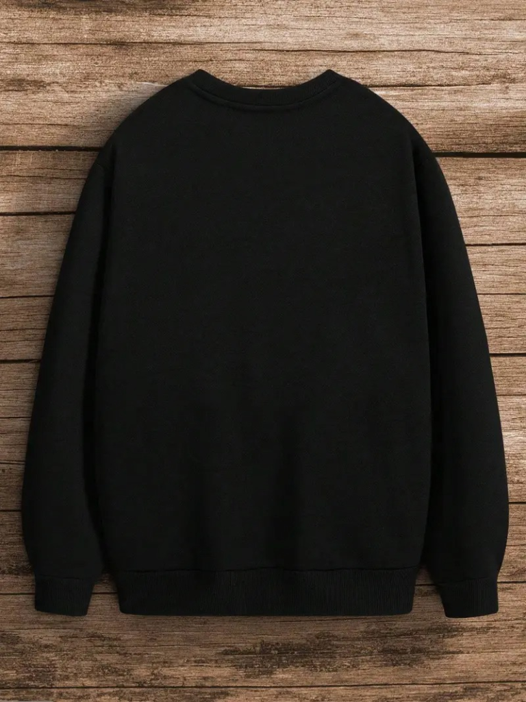 Erkek Uzun Kollu Bisiklet Yaka Yazı Detaylı Iki Iplik Bluz