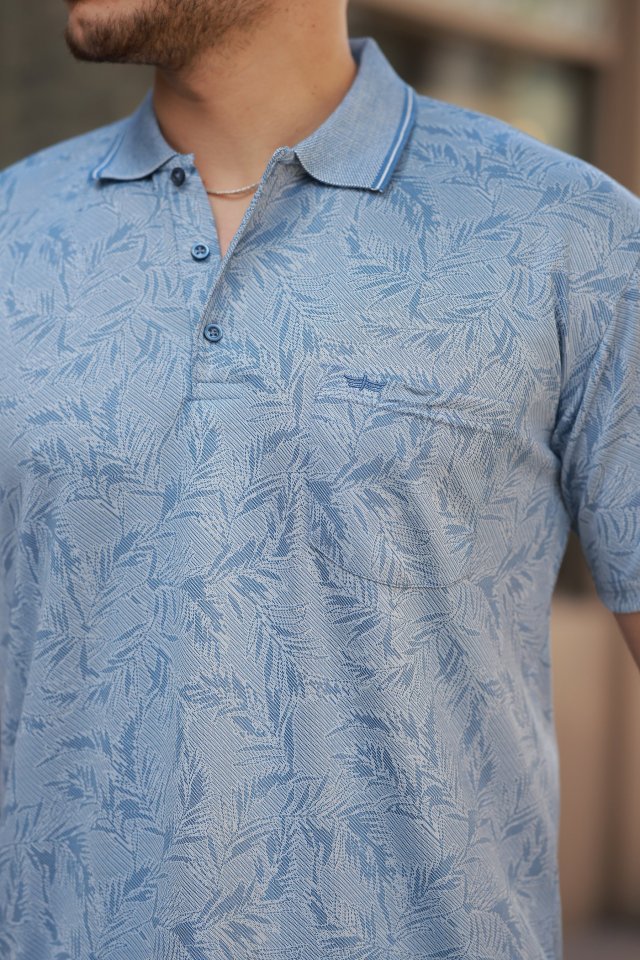 Erkek Yakalı Jakar Baskılı Kısa Kollu T-shirt