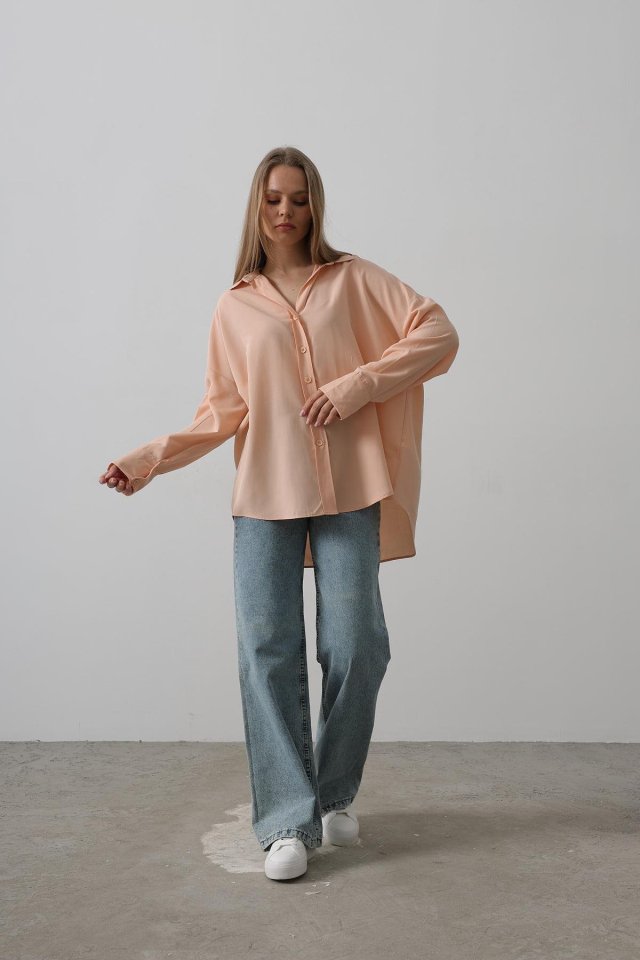 Geniş Manşet Detaylı Gömlek - Açık Somon