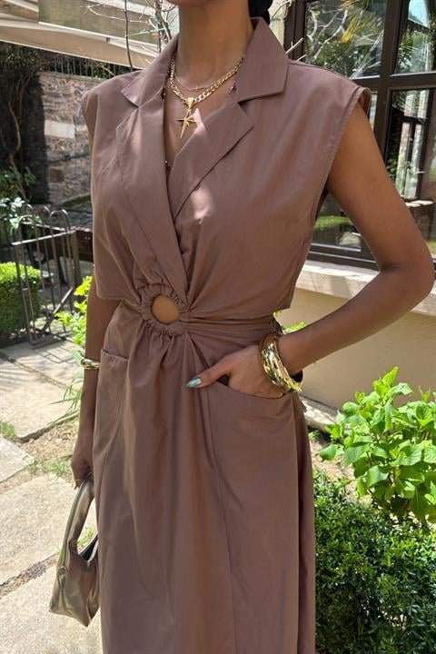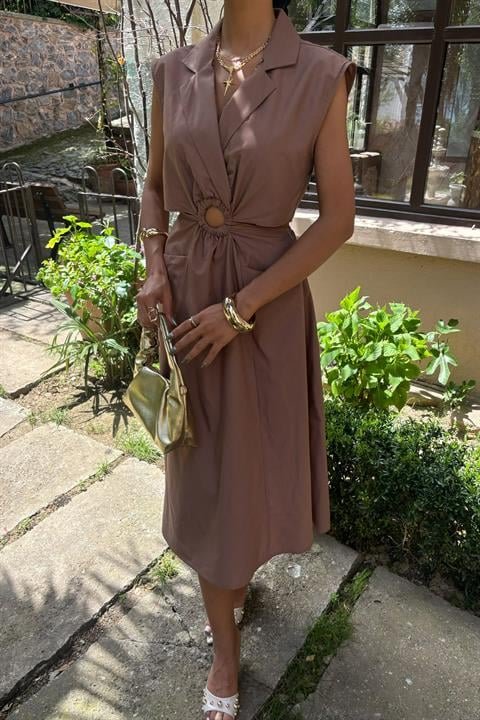 Göbeği Halka Detaylı Midi Boy Elbise 2896