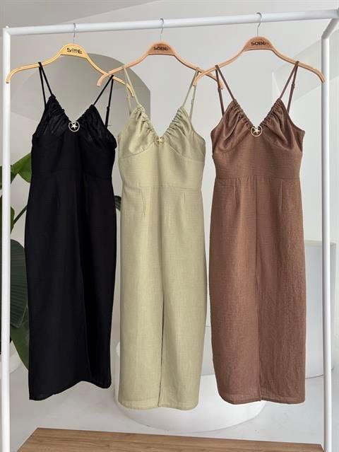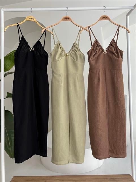 Göğsü Aksesuarlı Önü Yırtmaçlı Elbise 2899