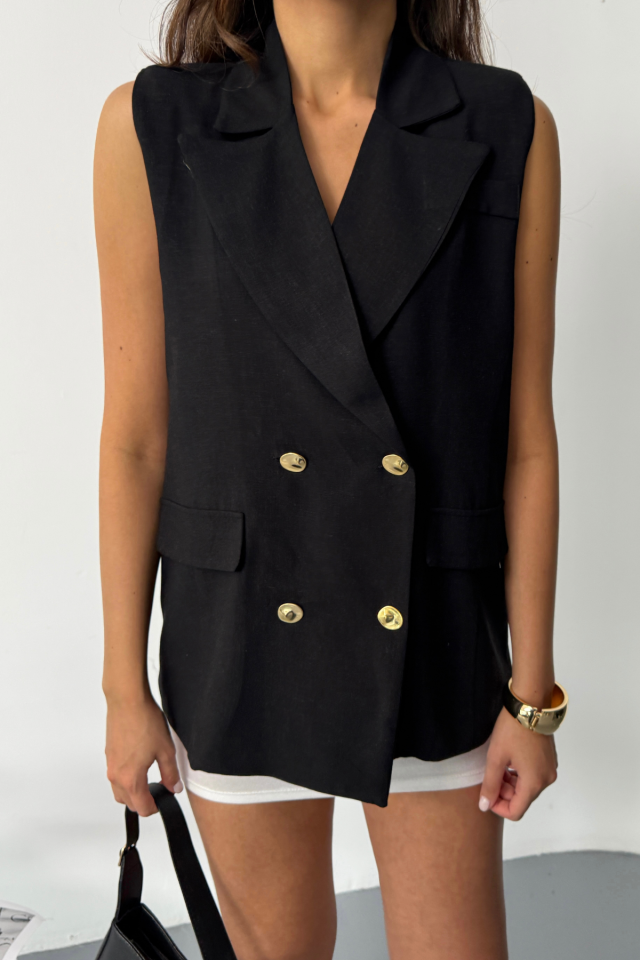 GOLD DÜĞMELİ KETEN YELEK - Siyah
