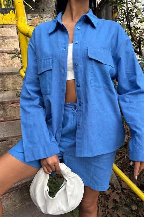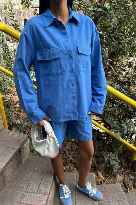 Gömlek Ve Şort Flamlı Keten Takım 10130