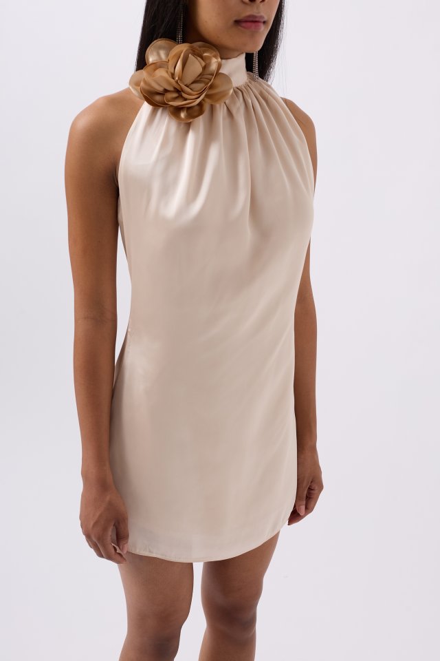 Gül Detay Mini Saten Elbise