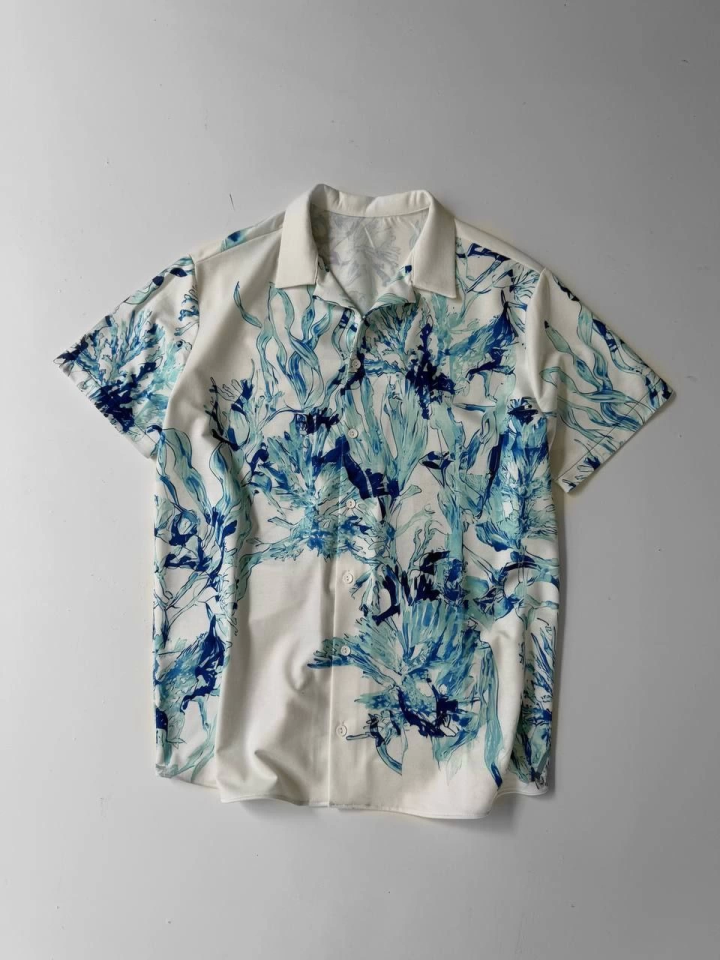 İki İplik Kumaş Baskılı Gömlek - Beyaz
