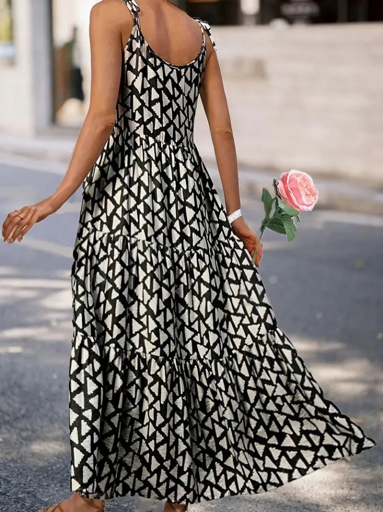 Kadın Askılı Yuvarlak Yaka Fırfırlı Desenli Uzun Bürümcük Elbise