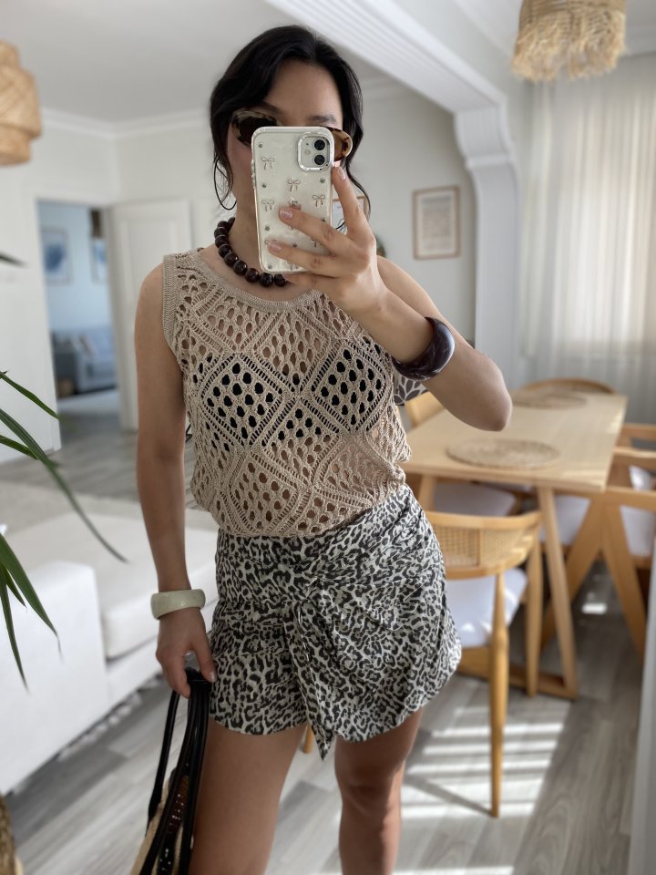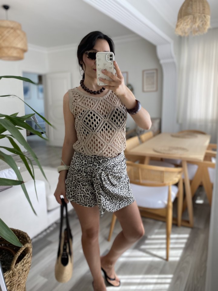 Modelin Ölçüleri: Boy:165, Kg:55, Göğüs:90, Bel:72, Kalça: 100