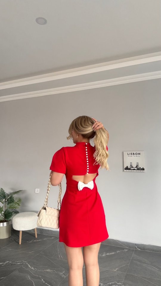 Kadın Atlas Kumaş Iç Astarlı Gizli Fermuarlı Inci Düğme Detaylı Mini Elbise