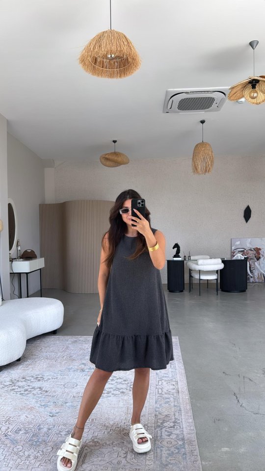 Kadın Bisiklet Yaka Eteği Volanlı Bürümcük Elbise