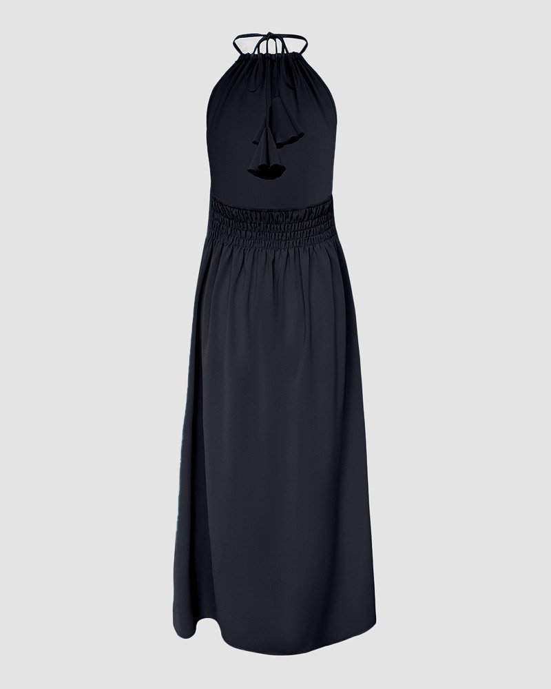 Kadın Boyundan Askılı Halter Kollu Viskon Elbise