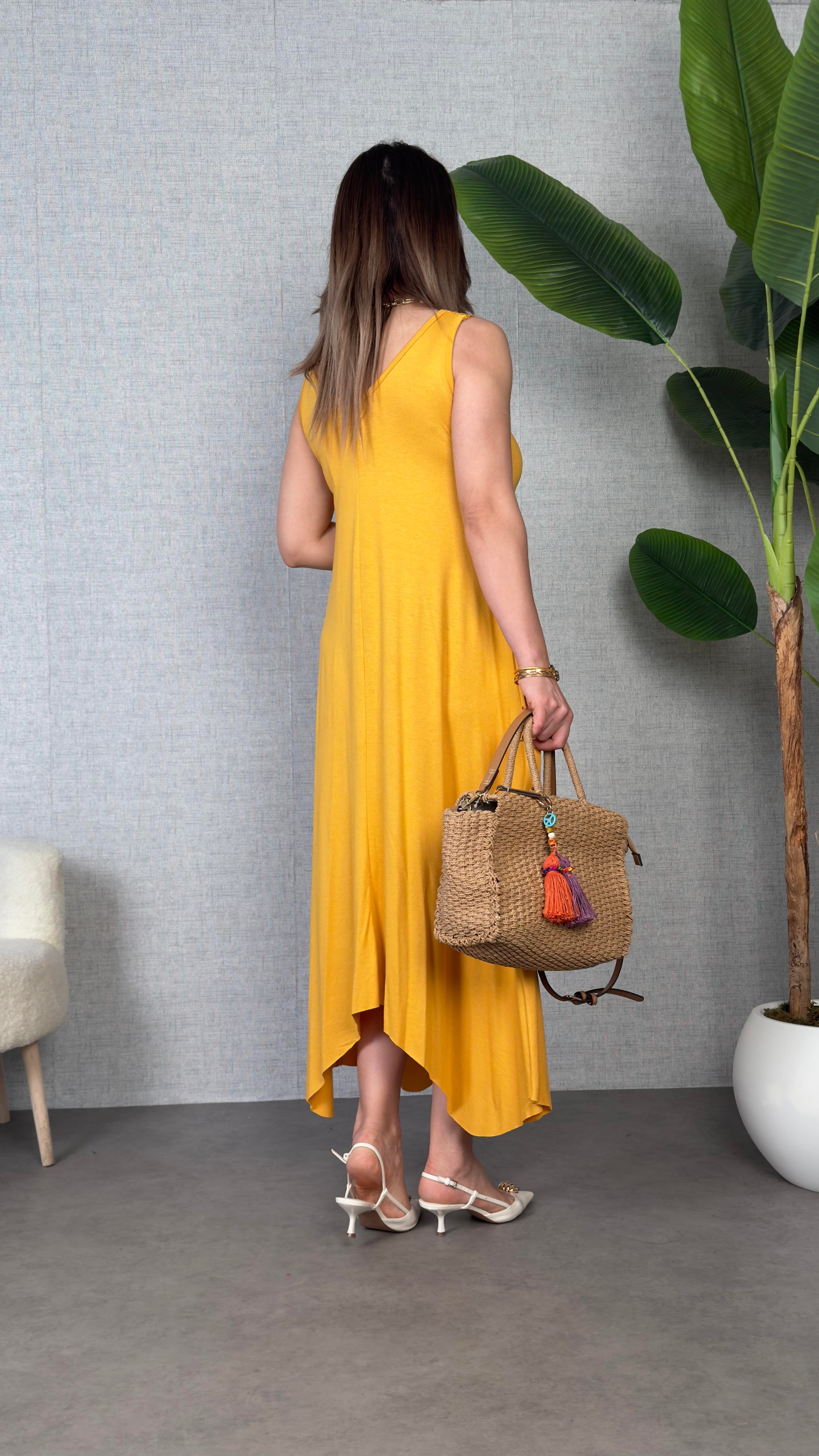 Kadın çan Dokuma Kumaş V Yaka Asimetrik Kesim Elbise