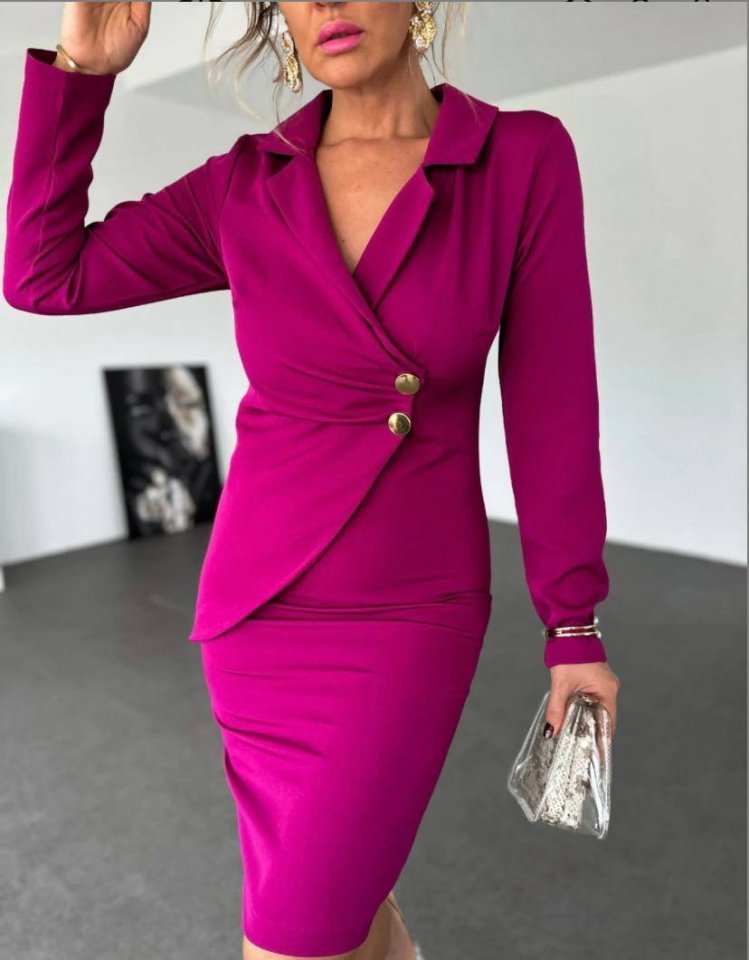 Kadın Ceket Yaka Düğme Detaylı Atlas Kumaş Elbise