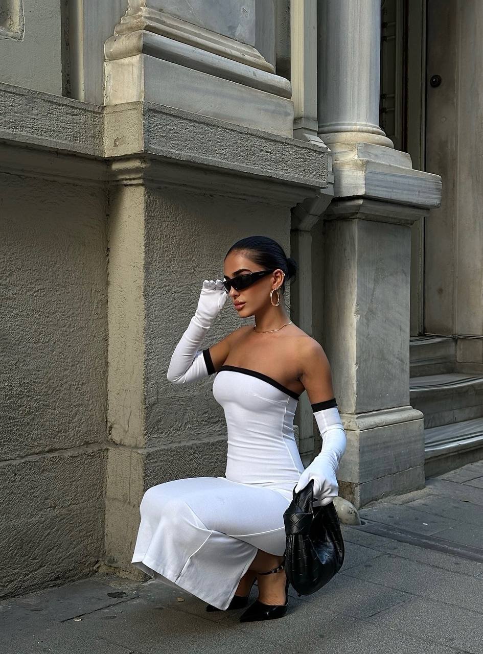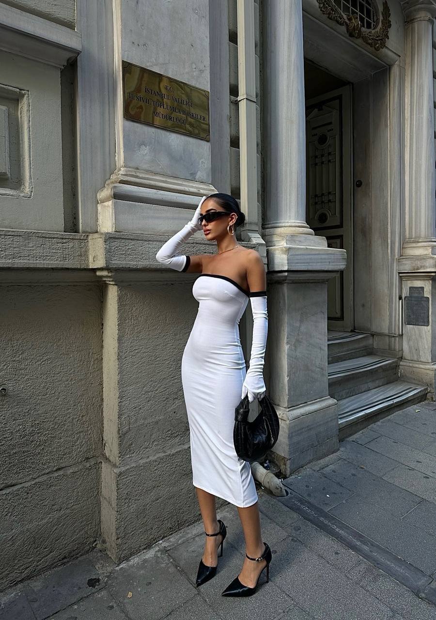 Kadın Dalgıç Kumaş Askısız Yırtmaç Detaylı Elbise
