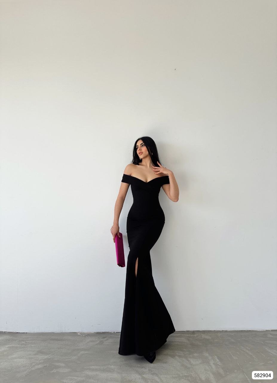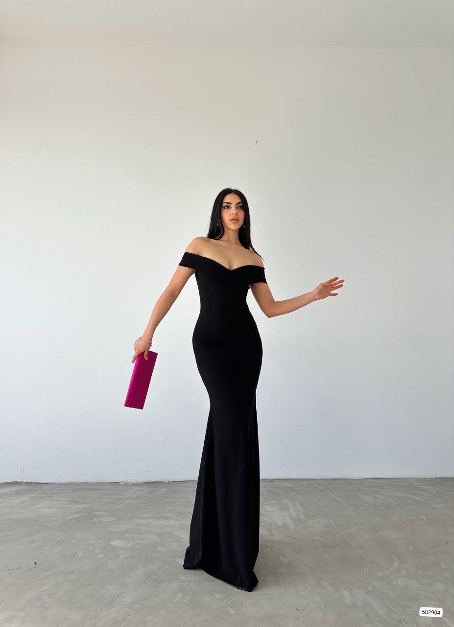 Kadın Dalgıç Kumaş Kayık Yaka Ve Dekolte Detaylı Elbise