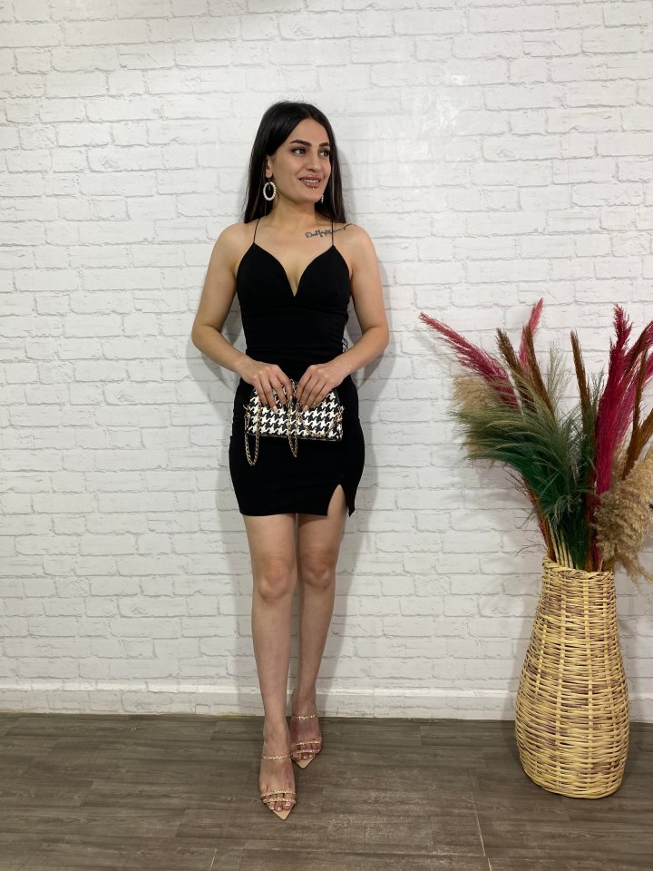 Kadın Derin V Yaka Sırt Dekolteli Fırsat Ürün Mini Elbise