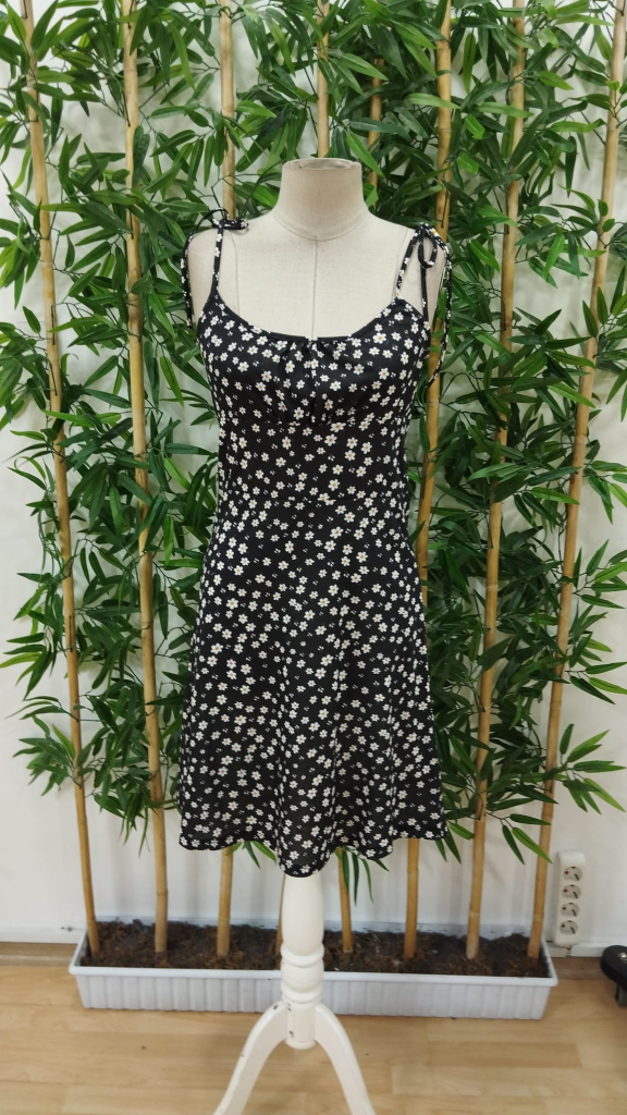 Kadın Ip Askılı Omuzlardan Bağcıklı çiçek Desenli Süprem Elbise