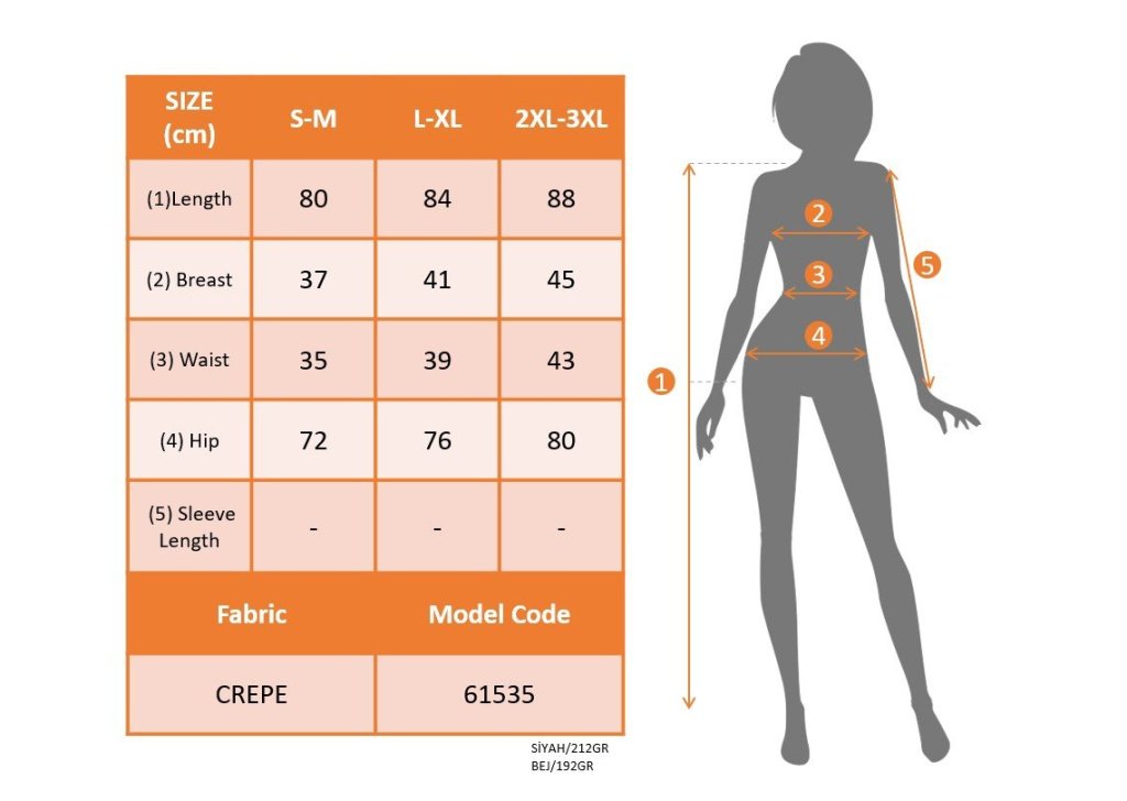 Modelin Ölçüleri: Boy:165, Kg:55, Göğüs:90, Bel:72, Kalça: 100