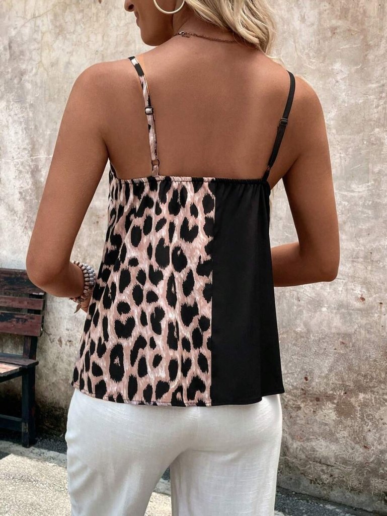 Kadın Ip Askılı V Yakalı Leopar Desenli Viskon Bluz