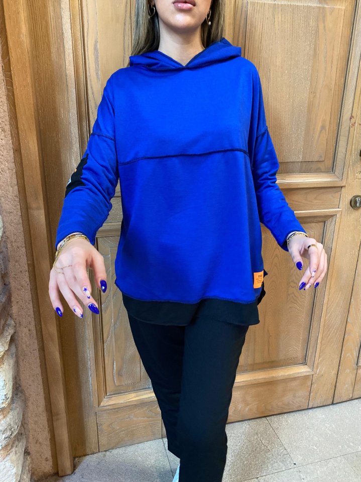 Kadın Kapşonlu Etek Ucu Detay Armalı Ters Dikiş Gorunumlu Ikili Takım